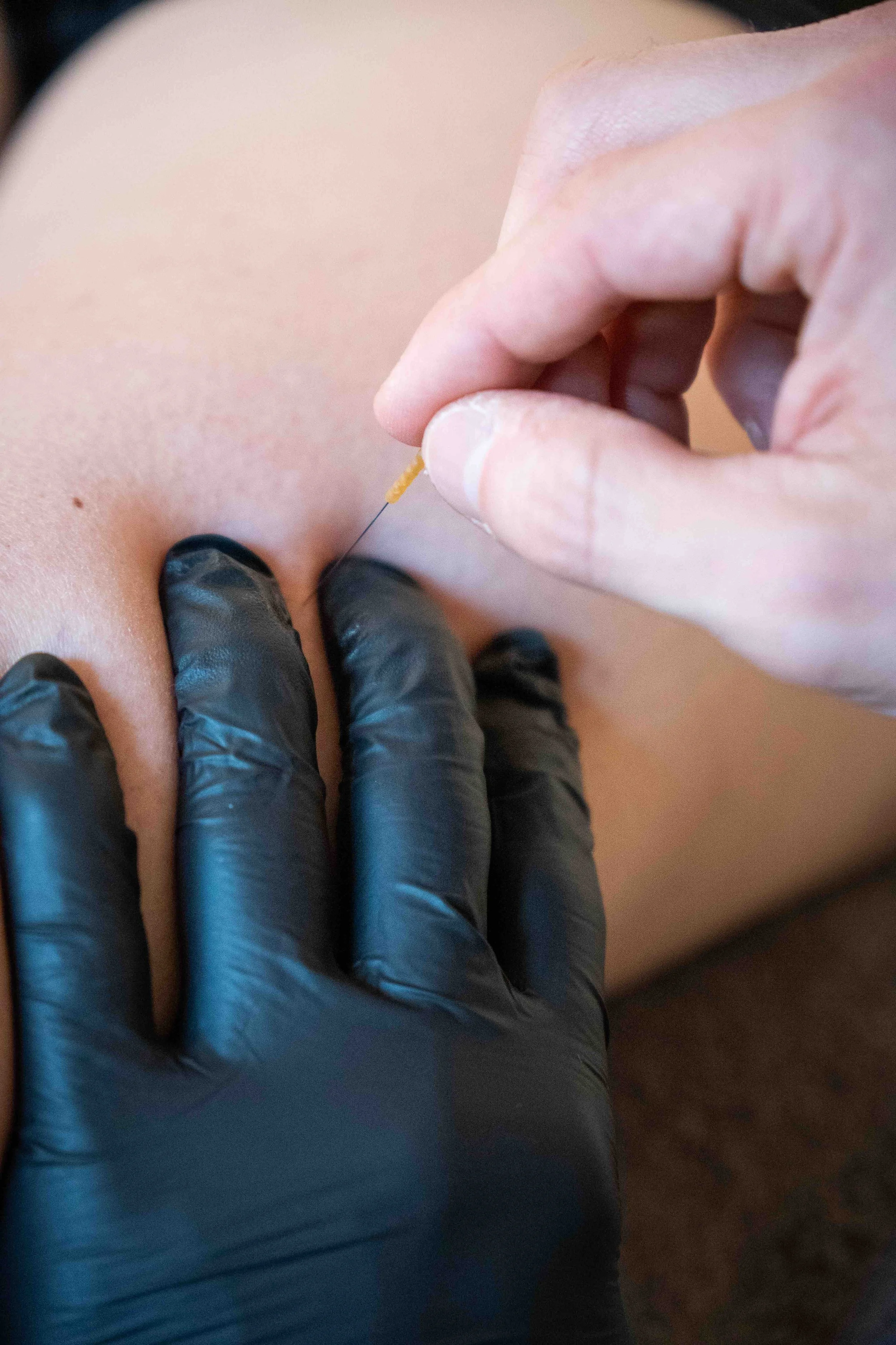 Dry Needling ist eine Technik, bei der eine Akupunkturnadel in die Muskulatur gestochen wird, um Muskelverspannungen zu behandeln. Die Therapie zielt darauf ab, Triggerpunkte oder verhärtete Muskelknoten zu behandeln. Durch das Einstechen der Nadeln kommt es im Muskel zu einer lokalen Reaktion (Muskeltwitch), das zur Senkung von Spannung und Verbesserung der Durchblutung führt.
